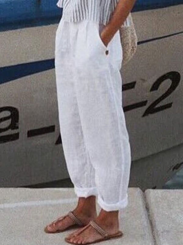 Ladies cotton linen high waist slim casual harem pants