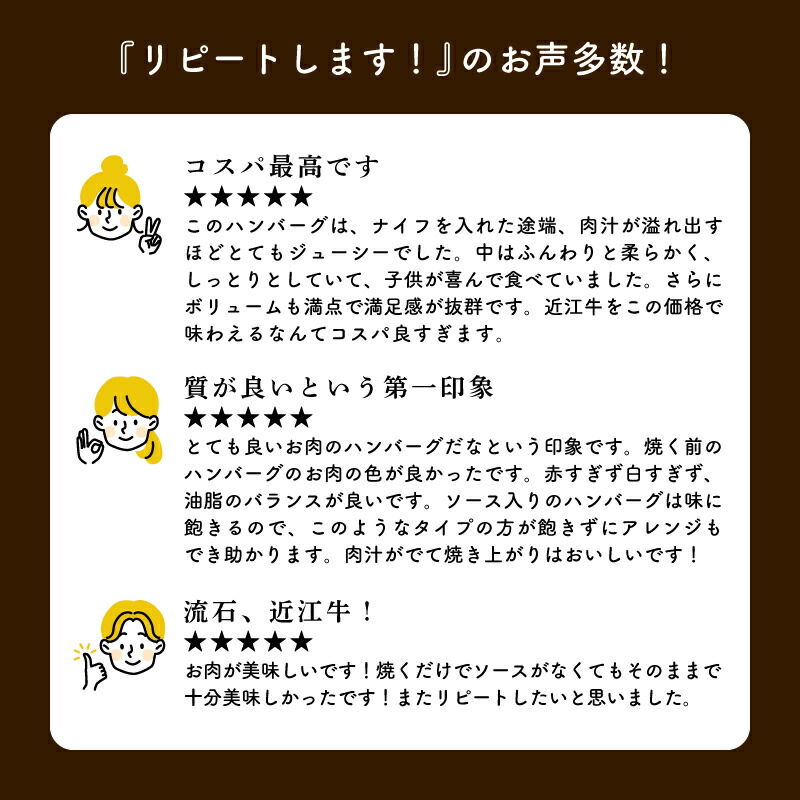 | 商品詳細 | 近江牛と淡路島産の玉ねぎを贅沢に使用し、多くの方にご満足いただけるハンバーグをつくりました。 200gの大満足サイズでお届けします。 ※「売り切れ」の表示がある場合でも、製造の都合により在庫が随時補充される可能性がございます。 ※発送月の変更は承りかねます。 ※出荷作業の都合により、お申し込み順に発送できないことがございます。あらかじめご了承ください。 【原材料】 豚肉(米国産)、牛肉、玉ねぎ、全卵、パン粉、牛乳、醤油、食塩、コショウ |