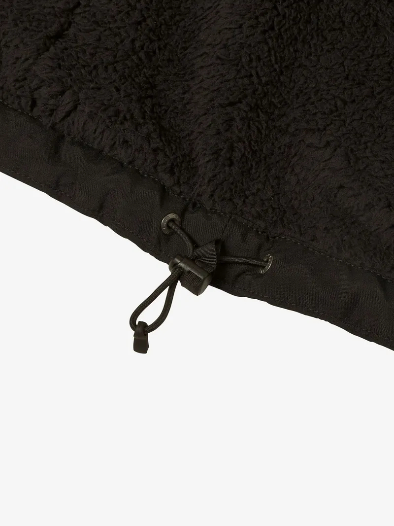 外装材には防水加工を施しているので、多少の雨や雪にも対応可能です。身頃とフードの裏地には毛足の短いフリースを使用しており、柔らかく肌触りが良く暖かいです。
