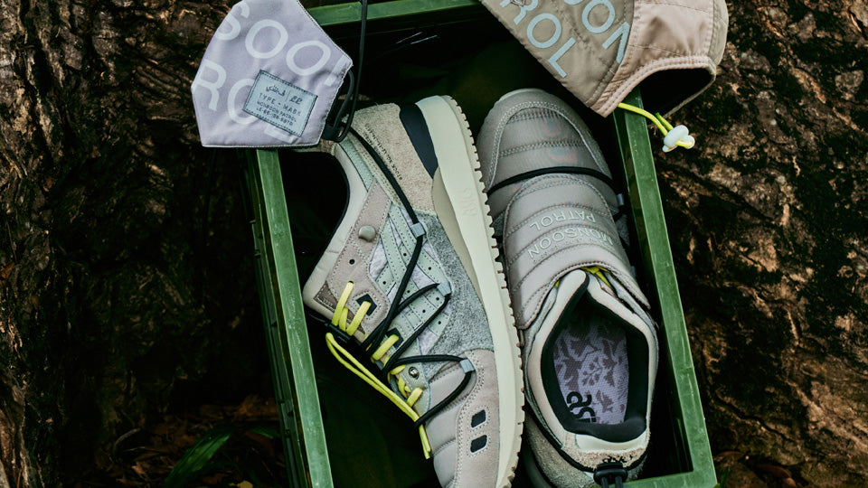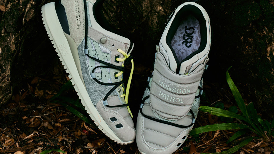 スプリットタン構造が特徴となった1990年発表のゲルライト スリーをベースに"Monsoon Patrol"から着想を得てメイクオーバーした本作。