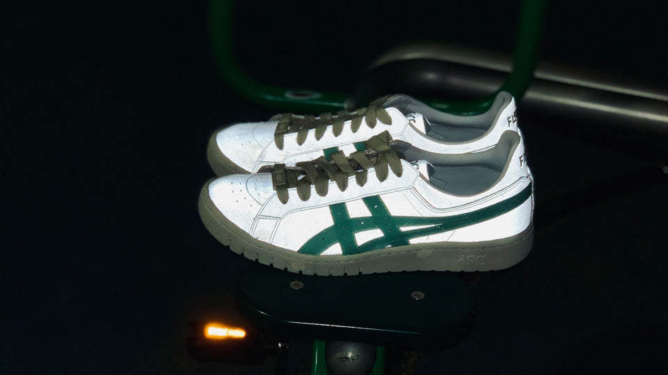 クッション性を強化する「fuzeGEL」の搭載や従来のデザインはそのままに、光に反射するリサイクル人工皮革とリサイクル繊維の中敷を採用。