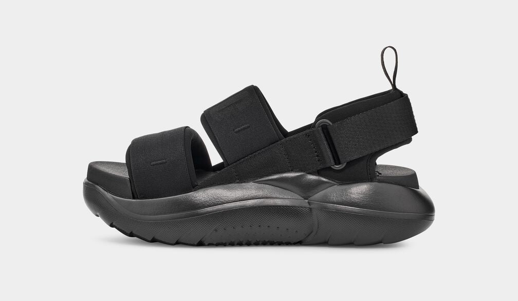 スニーカーとサンダルを組み合わせて、雲のように軽くて弾むような履き心地を表現するUGGの「LA CLOUD SPORT SANDAL」です。簡単にはけるよう、かかと部分にはタブを使用しています。再生可能なサトウキビ由来のアウトソールは軽量性に優れており、足全体を囲むクッションとの相性がとてもよく、ぜひ素足で体感していただきたい1足です。カジュアルからスポーティーまで合わせやすいブラック基調にしました。